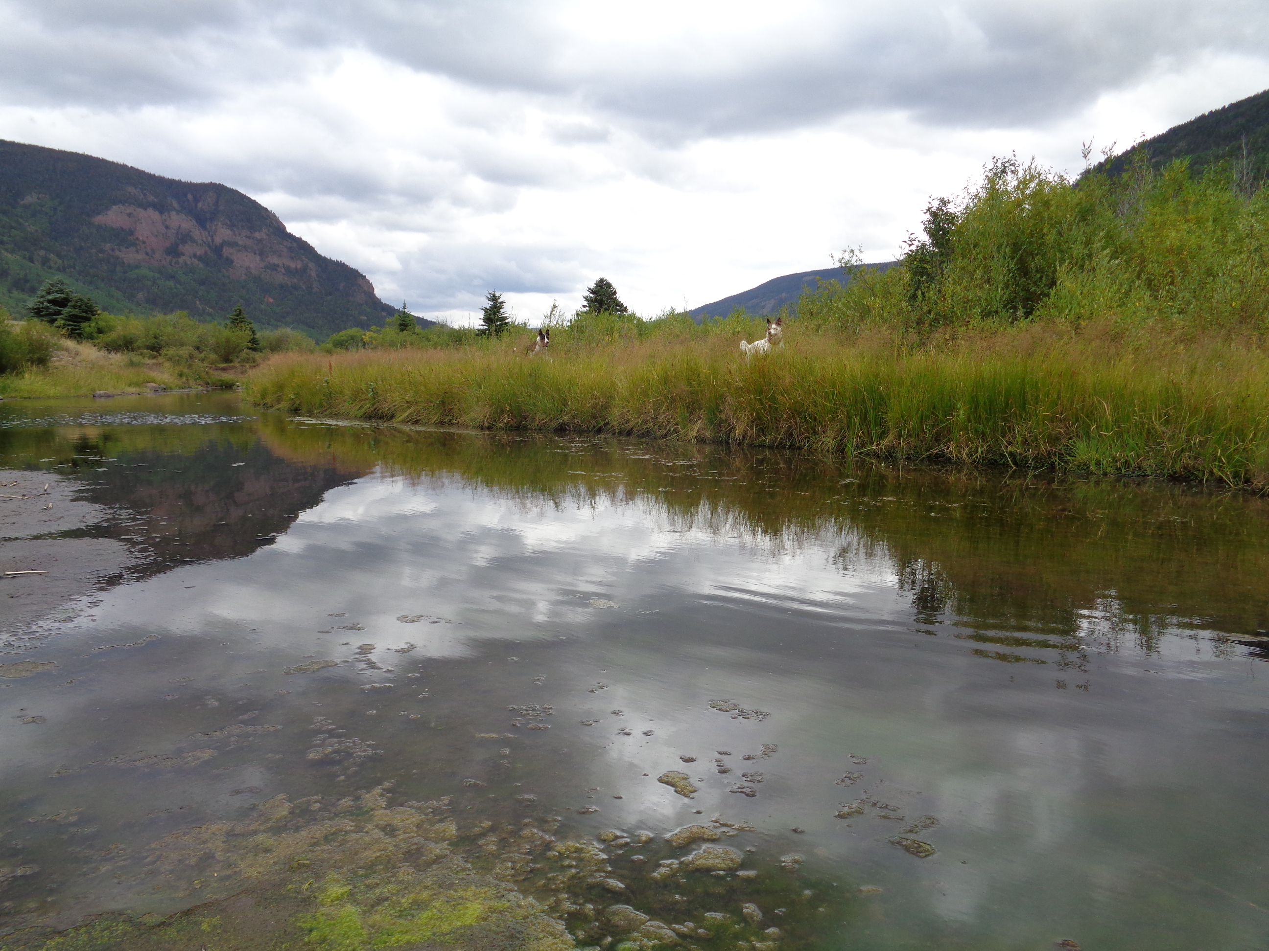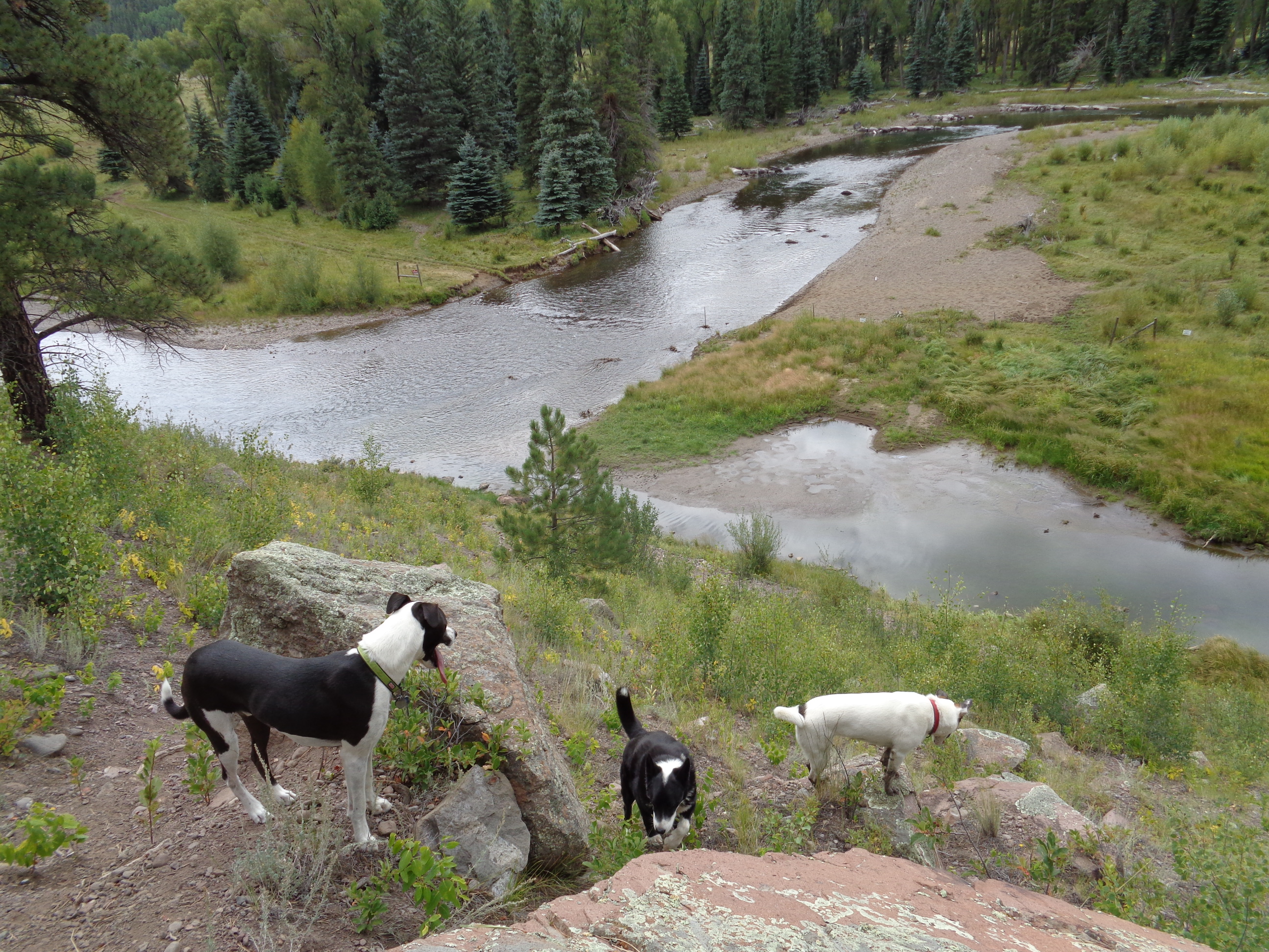 We drove up the National Forest road 250 from Highway 17, heading past Platoro, a seasonal village tucked away in the Rio Grande NF next to a reservoir primed for fishing. The river lead us through meadows, cattle, and deep into the mountains. We had to stop and explore. The dogs ran down into the valley as I stretched my legs. Rosie came back knee deep in black mud. She was smiling so it was worth it.