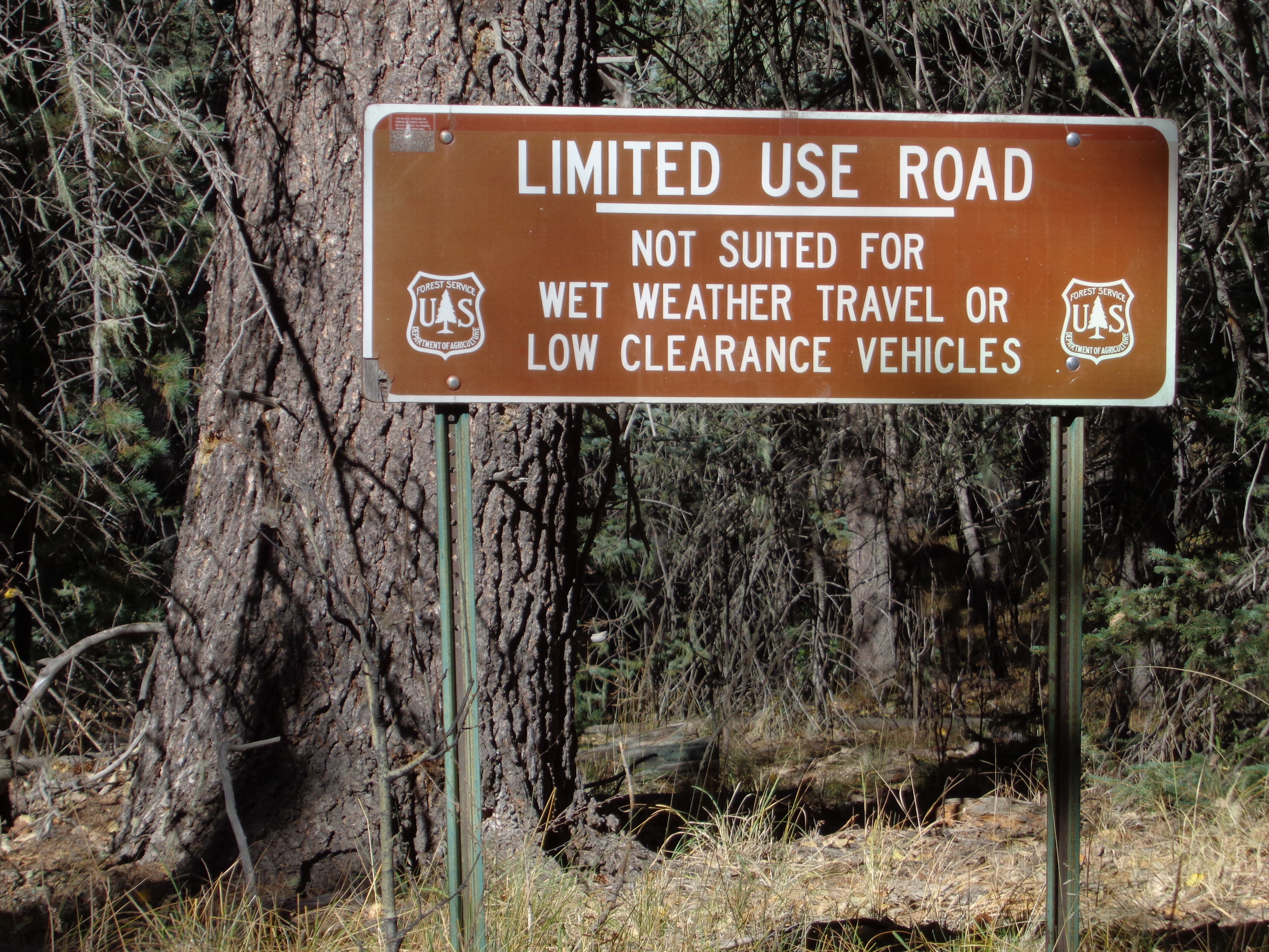 The sign said that the road ahead was Limited Use, not for wet-weather and only high clearance. It was a sunny day and the 4Runner has good clearance and big tires. I drove on. Apparently those ranger’s signs mean, don’t drive down here unless you have a 4×4 short wheel base, lifted, locked AND you know what to do. My mistake.