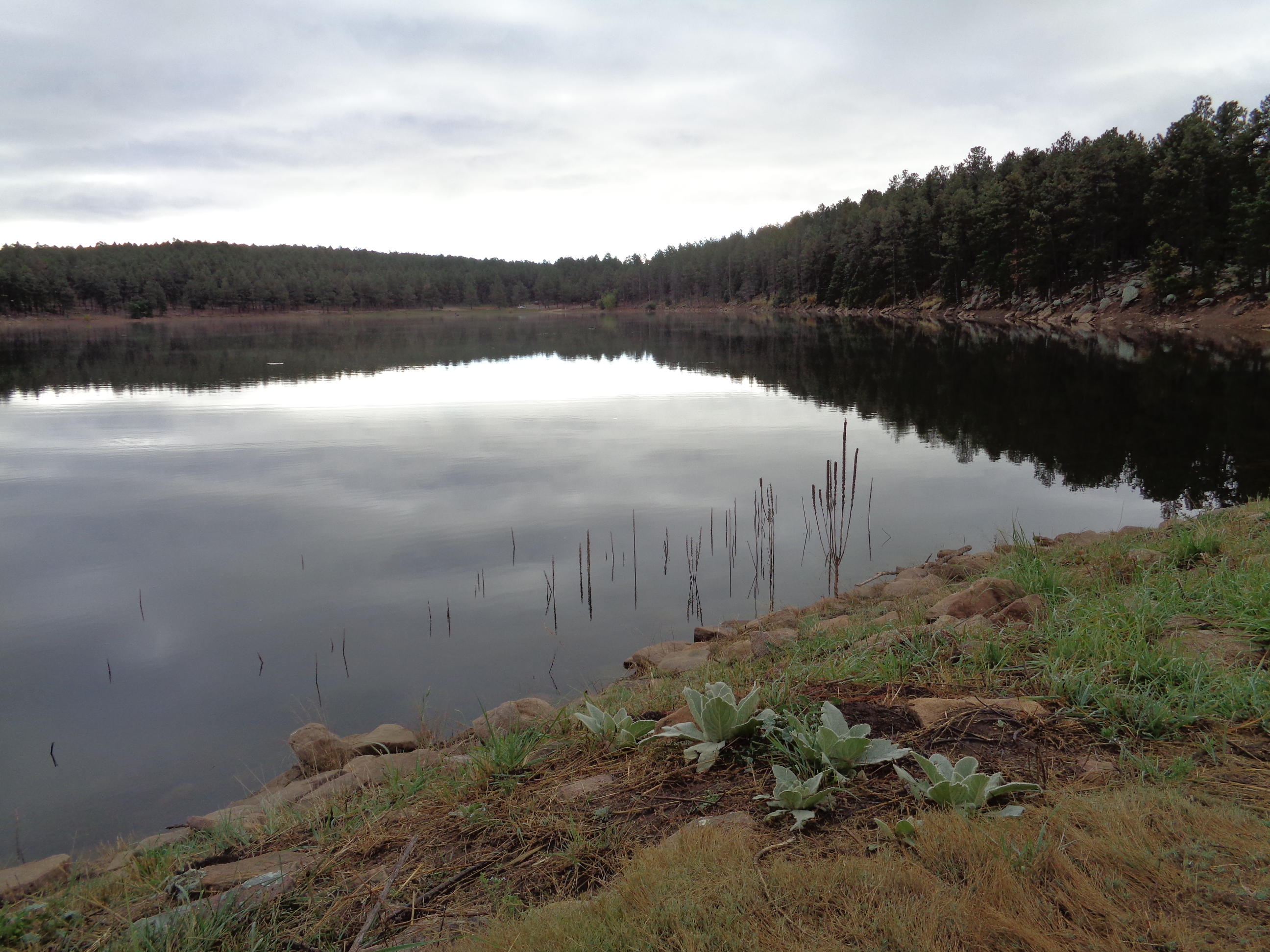 Suddenly the road opened onto a lake, almost a crater in the heart of a circle of mountains and thick trees. Beautiful, this lake is only 35 acres and I looked forward to walking the perimeter with the dogs later on.