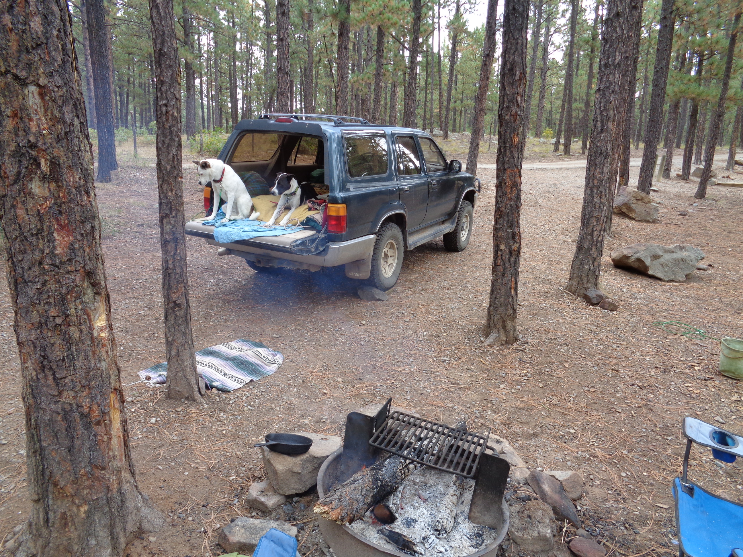 I spent two days with a fire, food, frito pies, beer and books. We walked three times a day at least, watched the fishermen, and day dreamed as usual. The lake took less than an hour to walk around, a perfect little hike that took the dogs, engaging them yet containing them as they roamed. I could relax as they visited the locals for any extra attention with wagging tails, no one seemed bothered by the pups luckily.