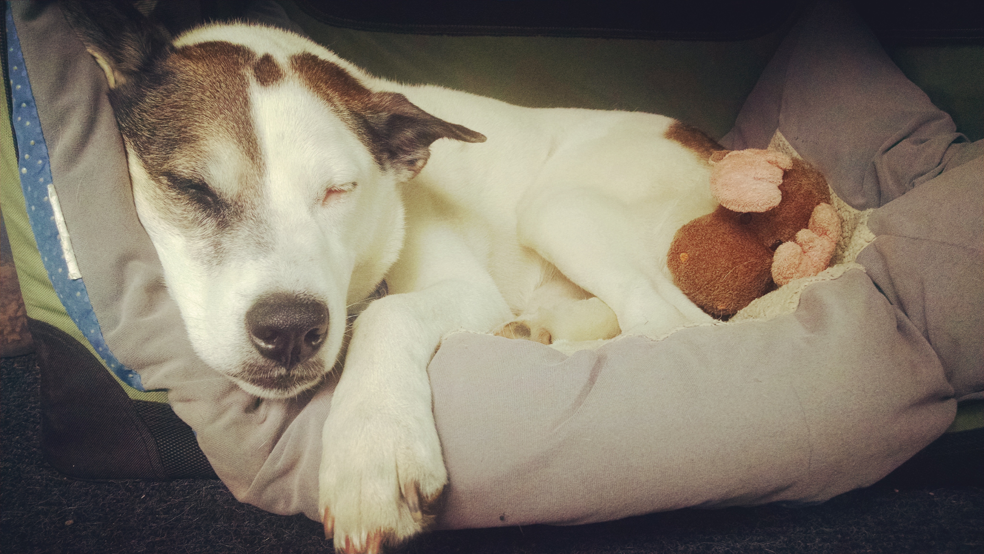 Rosie is not a friend of vet clinics. Just trying to get her to be sedated can be a trial but this time, it’s easy. One poke in the butt and within ten minutes she’s passed out on the floor with her head on my lap, mouth full of quills.