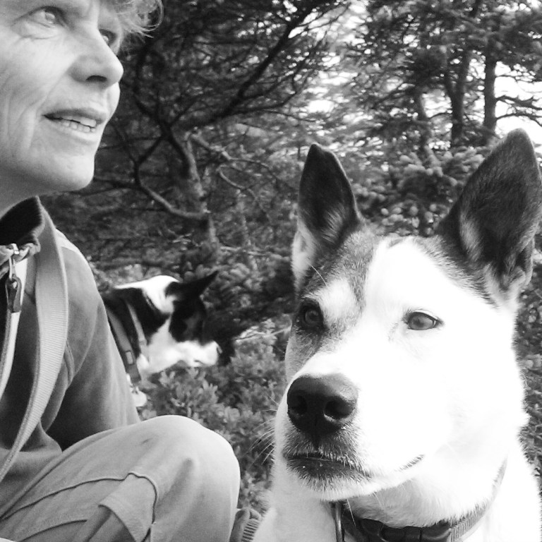 Rosie though. I finally put down the coffee and look for her. She’s up the hill behind the meadow, slowly and painfully hobbling down through the grass to me. She’s not walking right. I race up to her. Her mouth, face, legs and paws are thick with quills. A porcupine got her. Fifty or so quills have paralysed her. I pick her up and carry her to the van and lay her inside. She wimpers. Fuck. Fuck. Fuck.