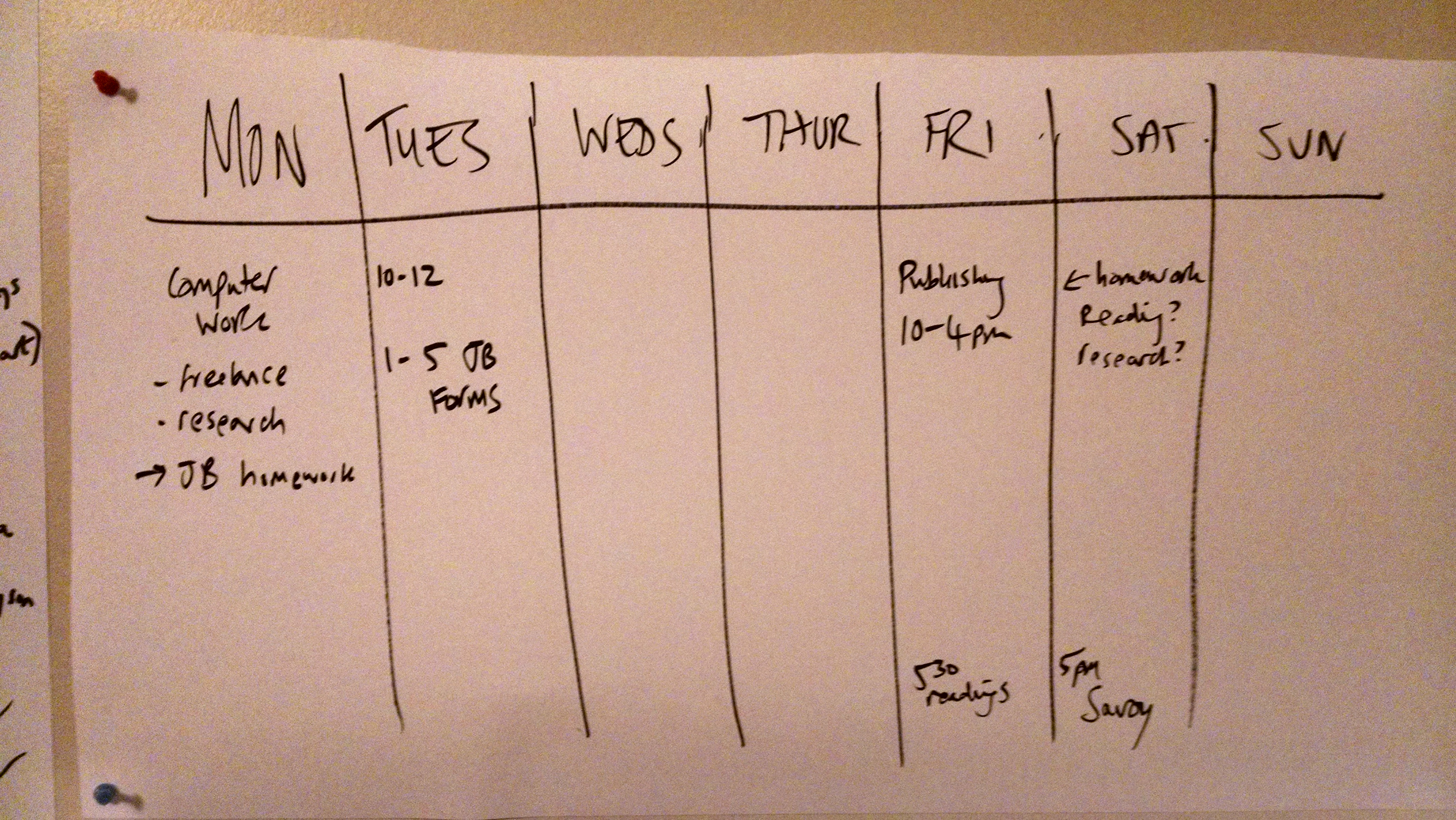 Starting graduate school as a grown up is a tad scary. I have plans though. Ways to organize my days. I thought it would help.