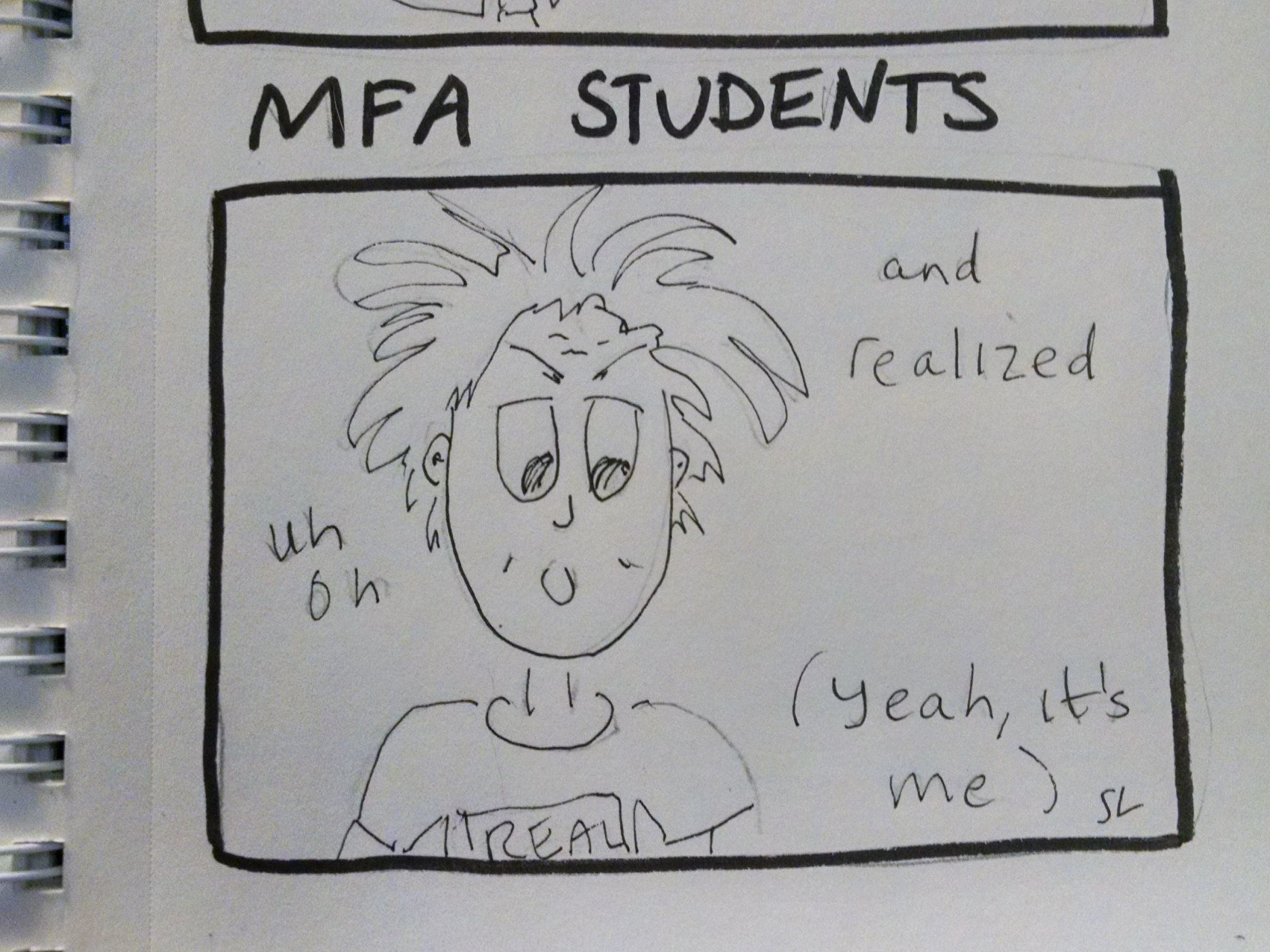 It’s a question we’re asked in the MFA program. Are we hungry enough? Do we care enough? There’s a spark, a flame in us, there has to be. We all moved to Montpelier for this graduate school, for the chance to study in a Writing and Publishing MFA at Vermont College of Fine Arts. But can we maintain it? Keep going? We’re adults here, it’s up to us. No one else cares as much as we do about our own writing. It’s as simple as that. No one else cares as much as we do about our own writing.