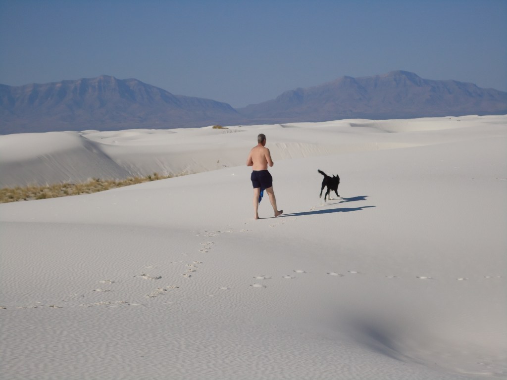 After time, my friend discovered the joys of traveling in various vehicles with me, finding lakes, rivers, trees and mesas. We’d hike and bike, he’d keep up, always smiling and wagging, sweet fella. Over those first few years, he got to visit the coast of Washington and Oregon, as well as much of Colorado and New Mexico. Seeing him run full out across beaches and sand, chasing birds who teased him into the sea, wonderful. Can’t be beat.