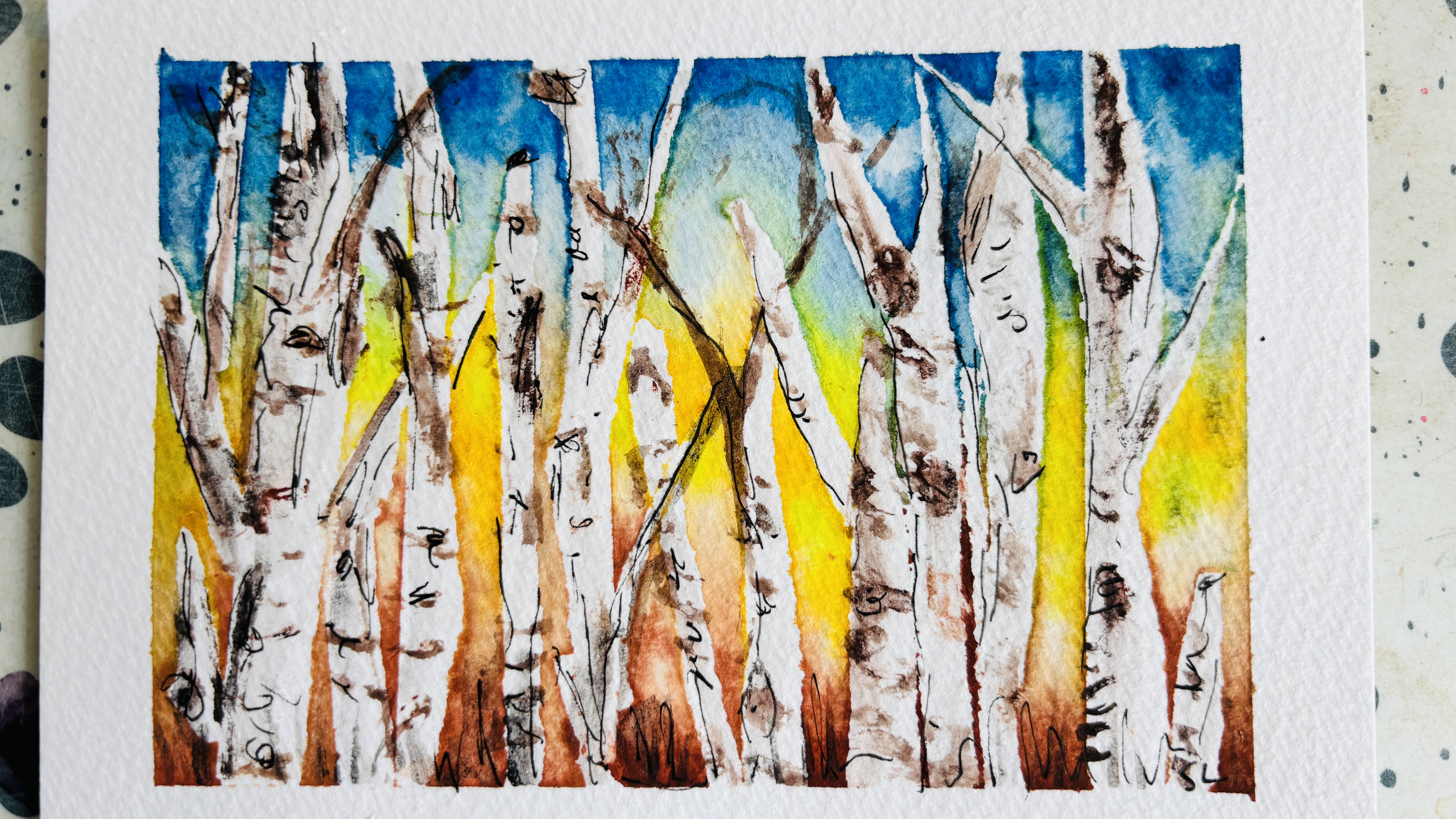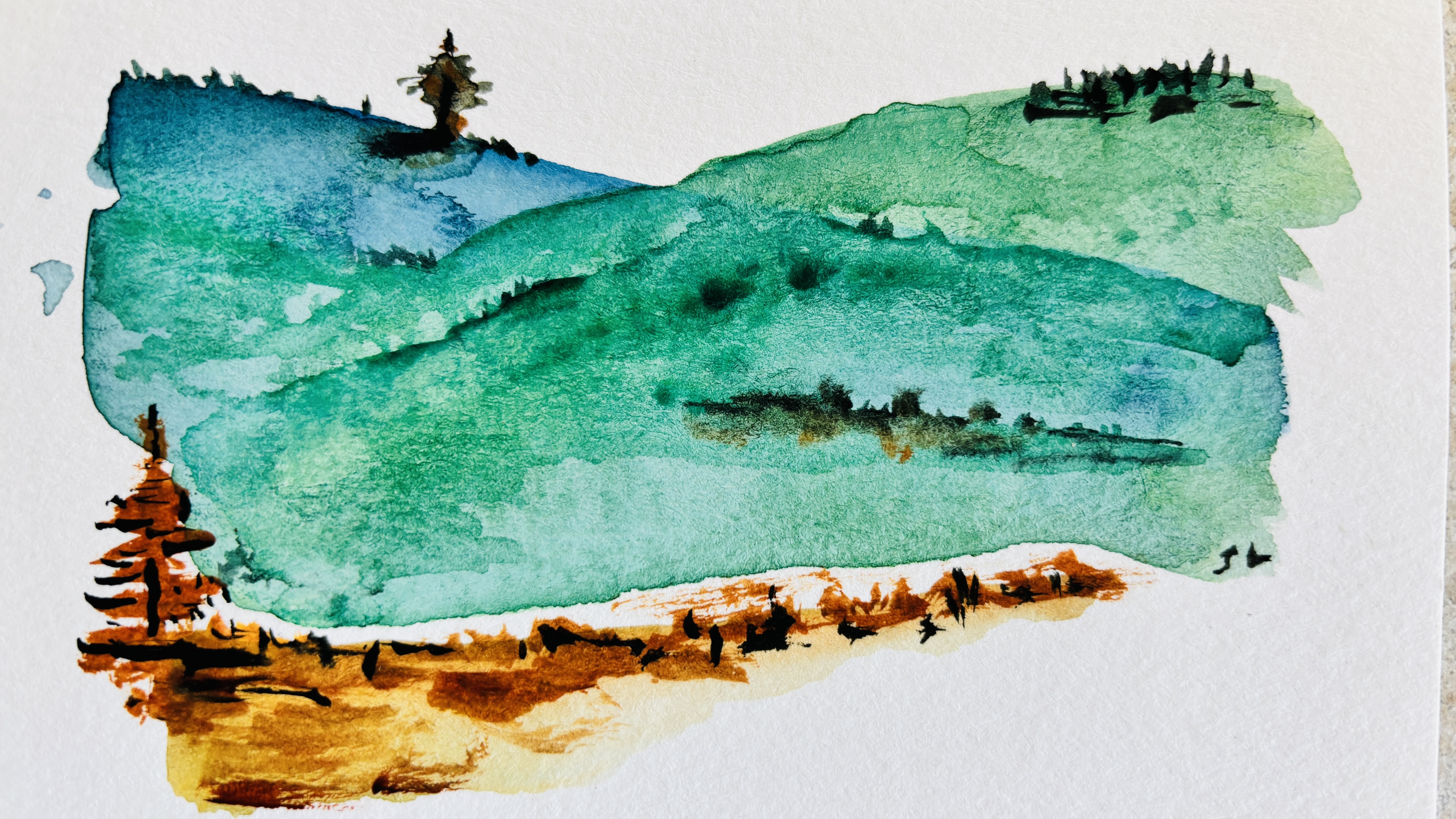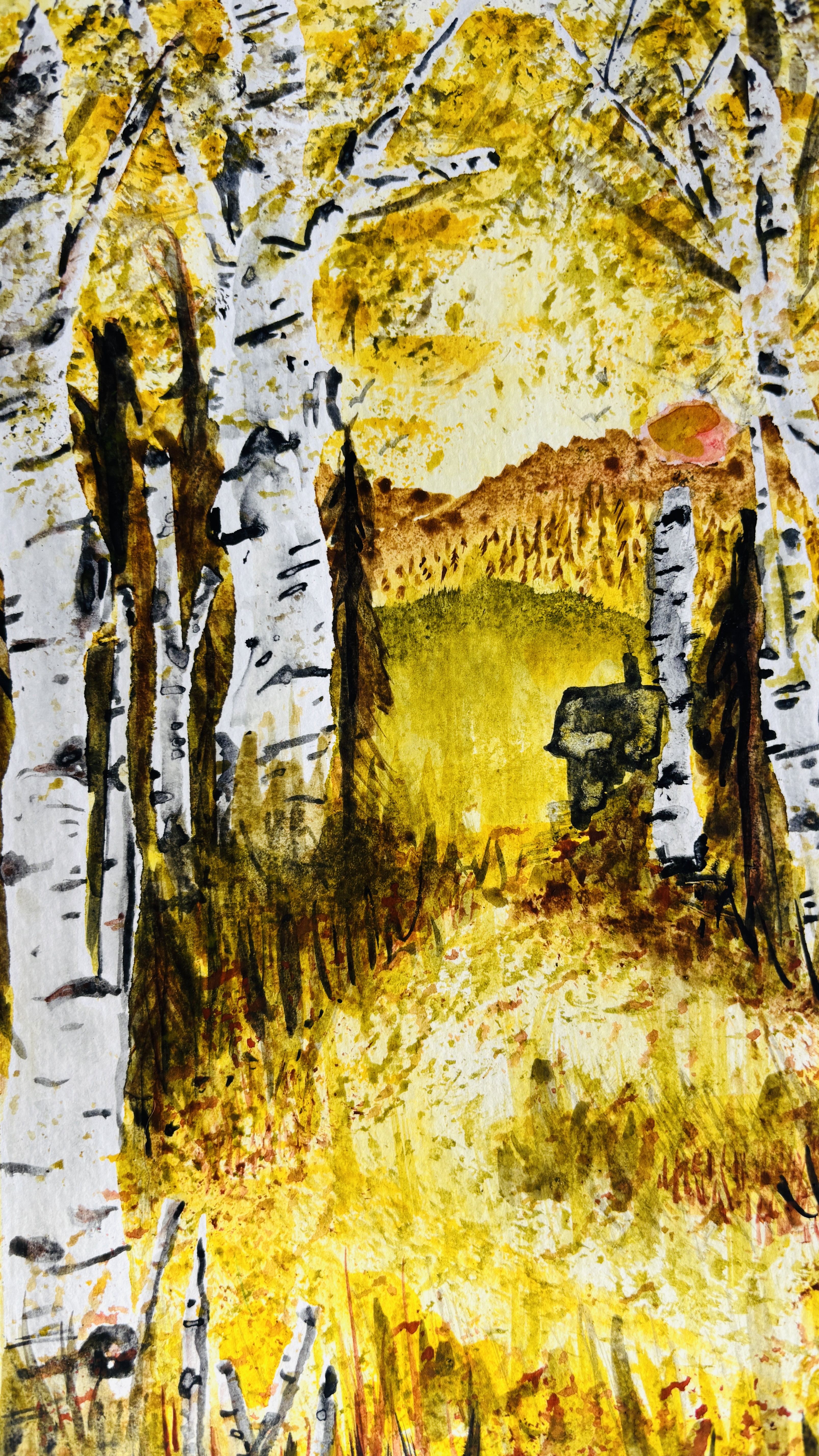 Since early 2000, I have been exploring Colorado especially around the Pagosa Springs and San Juan Mountains. I spent five months each summer for the last three years, working as a campground host. This time I took paints and paper and found myself on a bit of an obsessive streak, capturing the ever changing colors and lighting. A magical autumn for sure. I’d do my work in the morning, checking in with campers, cleaning up, walking my dogs and then my afternoons were pretty free for me to paint. I took tons of photos whilst there but most of these paintings are from my simply sitting at the campground and watching the natural world around me.