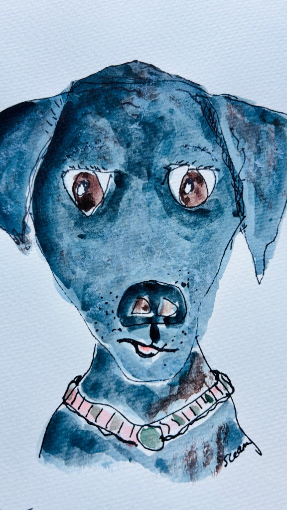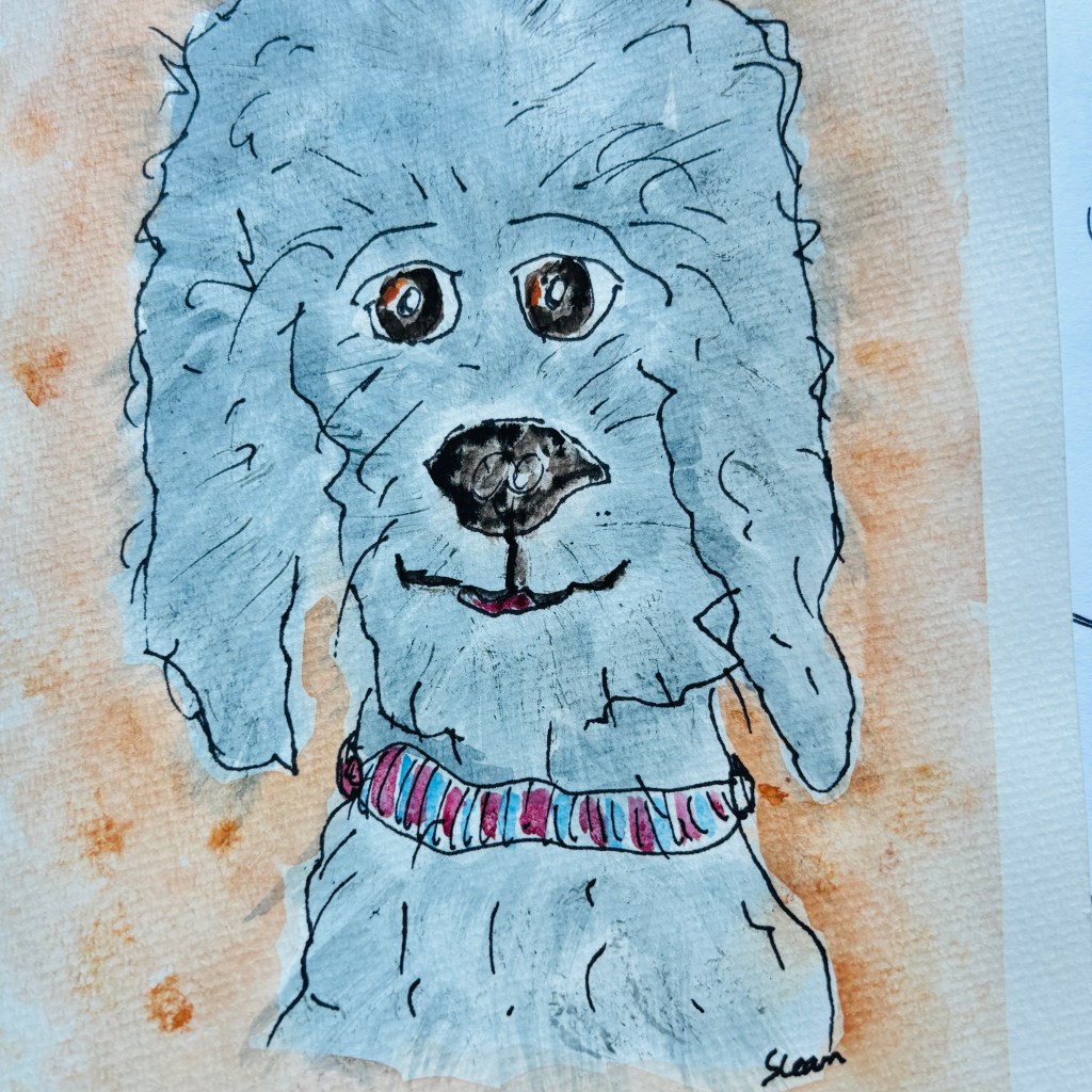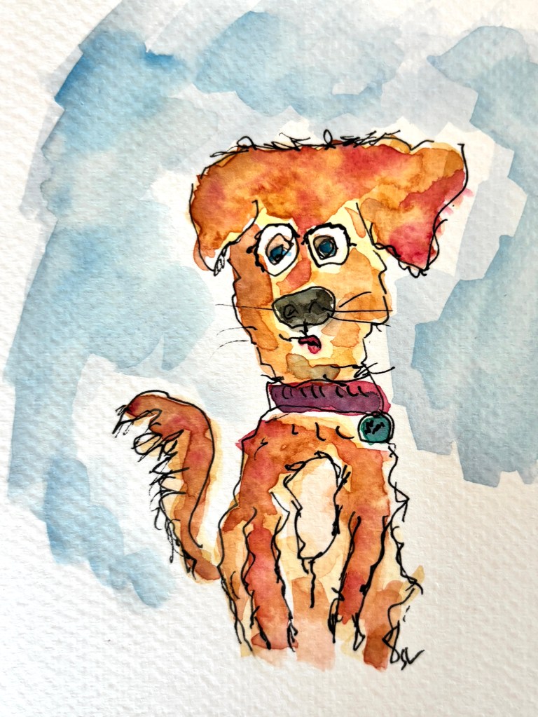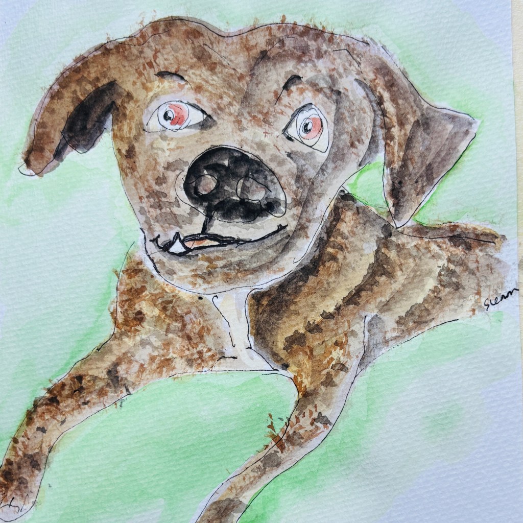 I’ve been doing these for this last year and wanted to get more examples out there for you. There are 5×7 inches, watercolor on 140# paper, and sold framed and shipped in the US for $75 each. Just get in touch with a few photos of your pup and we’ll go from there. Cheers!