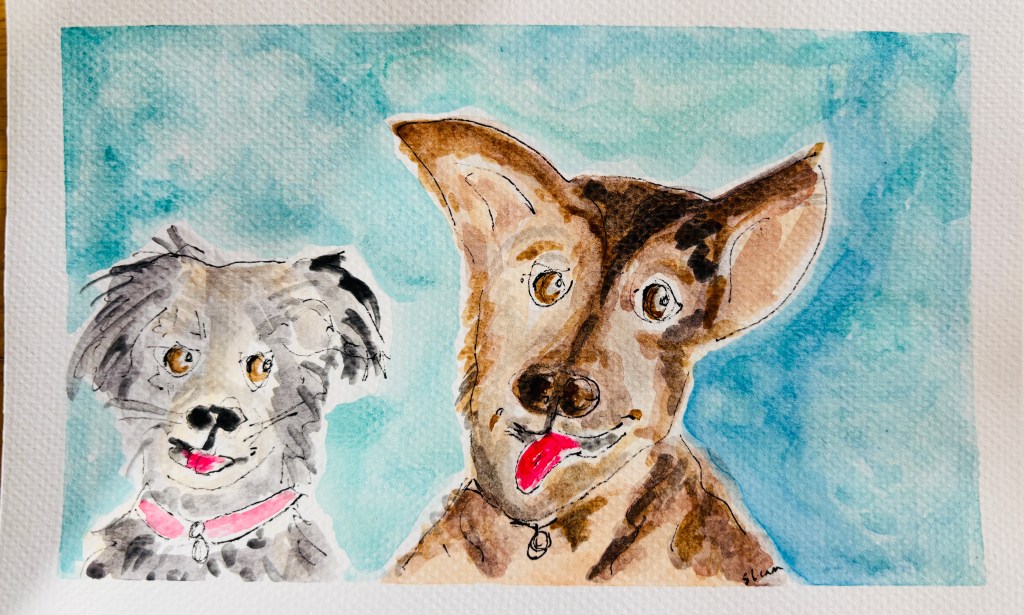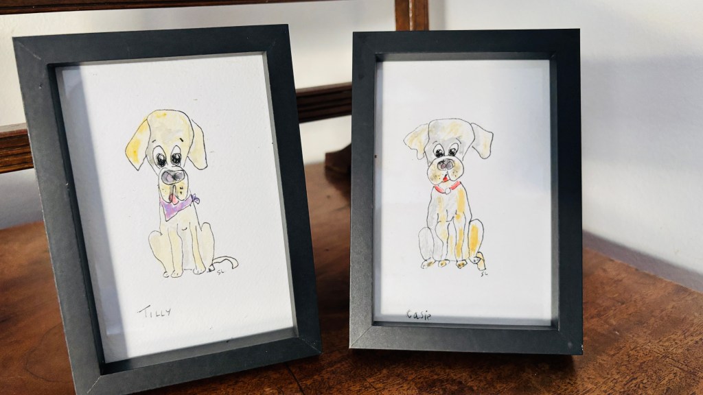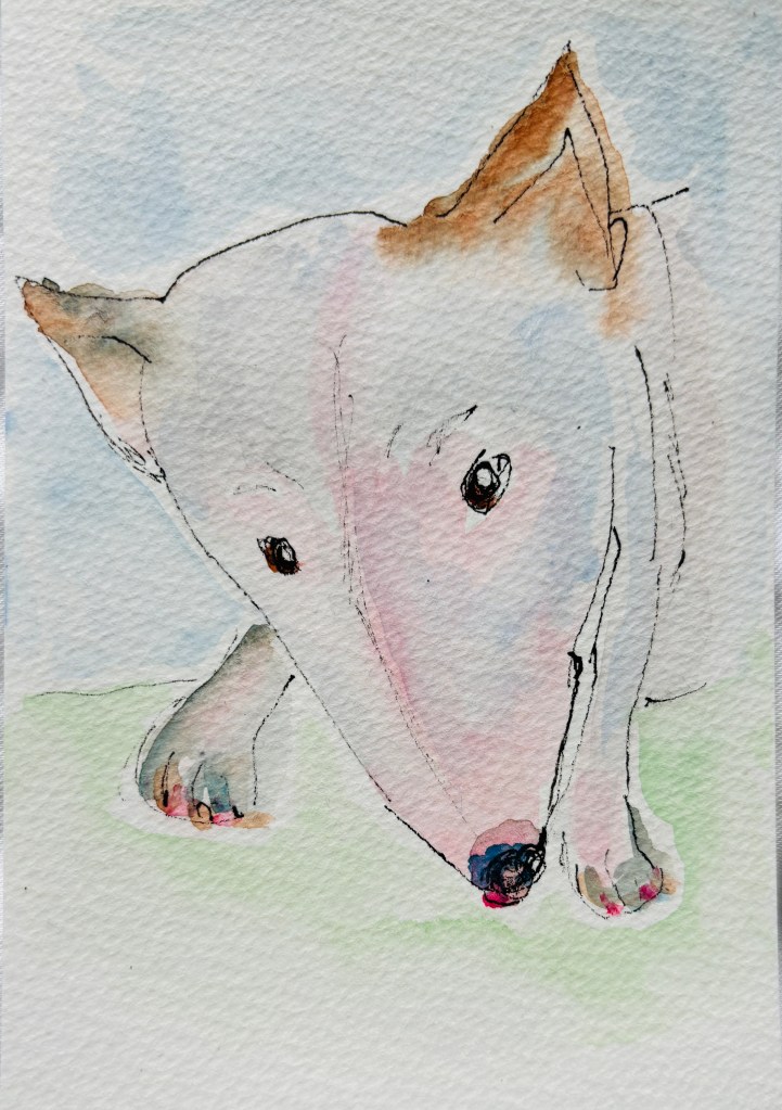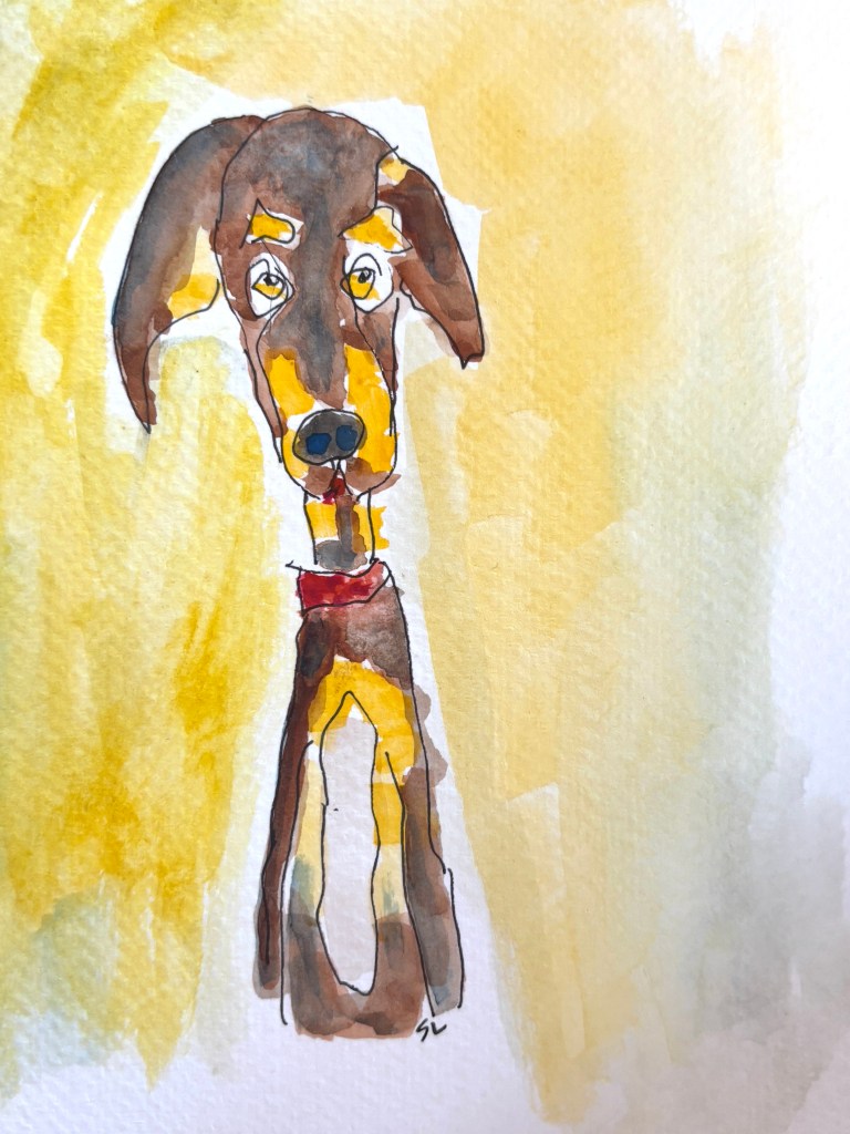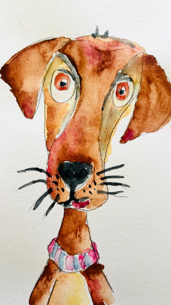 I’ve been doing these for this last year and wanted to get more examples out there for you. There are 5×7 inches, watercolor on 140# paper, and sold framed and shipped in the US for $75 each. Just get in touch with a few photos of your pup and we’ll go from there. Cheers!