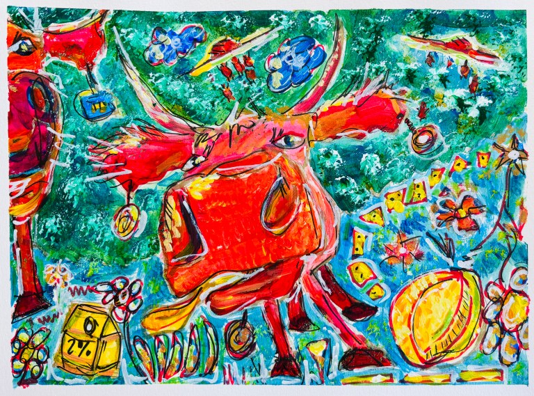 This painting above had started out horizontal as a landscape and it bored me so I flipped it upright and picked up a marker and played, no image or goal in mind. Now when I look at it, I’m inspired to grab other paintings that just don’t feel right, and maybe I’ll add pens or crayons or pastels and play more. I’ll let you know. Do you have something like that to mess with? Low stakes? Incomplete somehow? Have a look…